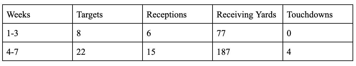 Keep in mind that the bottom numbers include one extra game played, but the per-game increase in production remains notable. Of course, Green Bay was without quarterback Jordan Love in Weeks 2 and 3, but that only benefits the optimistic view here; Love is their franchise quarterback and Kraft producing with him points to a promising future. While it would be unfair to project such a small sample size of statistics over a full season, it isn’t hard to see how Kraft could be in line to provide the Packers with the most reliable tight end they’ve had since Finley.