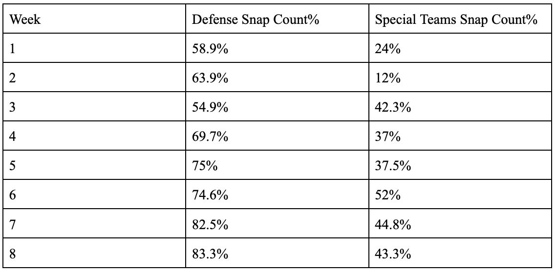 It is usually a great rule of thumb to not fix what is not broken to begin with, and this would qualify as a clear example. Bishop is a rookie who is only continuing to perform better, and the Steelers have parlayed their tremendous defensive performance into a 6-2 start. The team could face extra pressure with a full slate of divisional matchups still ahead, but you could not ask anything more from Bishop (or any nickel corner) than what they have gotten from him thus far.